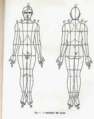 Il Dr. Fitzgerald, per definire le dieci linee di suddivisione, usò il termine "meridiani", riportando così nel corpo umano una suddivisione alquanto simile a quella con cui la geografia suddivide la superficie terrestre. Pertanto, secondo la Riflessologia, il corpo umano si può considerare attraversato longitudinalmente da dieci "meridiani" che lo dividono in altrettante zone, ciascuna delle quali contiene degli organi ben definiti.